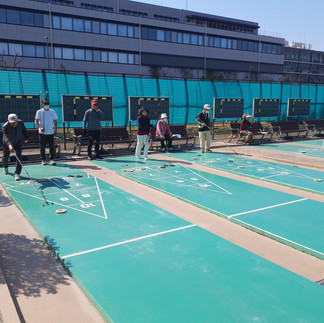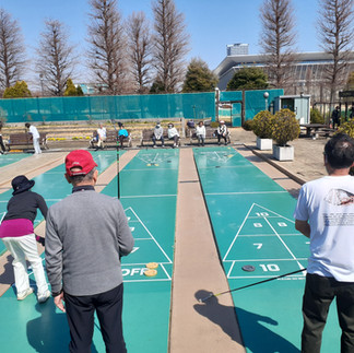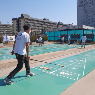 3月22日(土)第16回小斎杯日本シャフルボード協会創立記念大会を辰巳コートにて開催しました。当日は少し風はあったものの暖かい日差しを浴びながら、16名の参加者は日頃の練習の成果を思う存分発揮し、どのコートも熱戦が繰り広げられました。